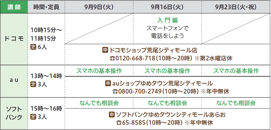 日時:開催日時は以下いずれかのソフトバンク店舗に問い合わせ、お申し込みください。