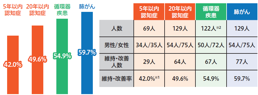 ◆なんと!フォーネスビジュアス検査のこれまでの取り組みの結果からこれまでに約半数の疾患リスク値が維持・改善!