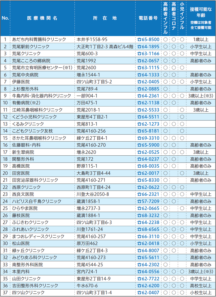 ◆インフルエンザ・新型コロナウイルスの予防接種ができる指定医療機関一覧