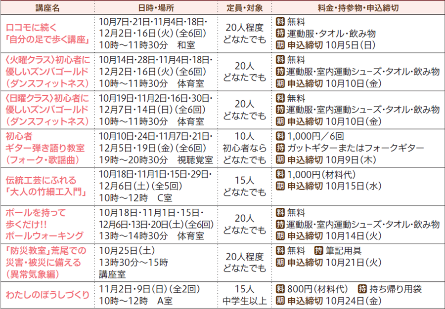 申込み:生涯学習課スポーツ推進係か、運動公園管理事務所に申し込み