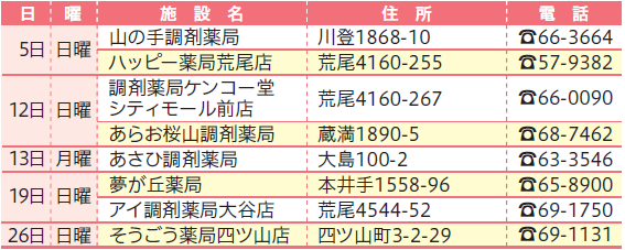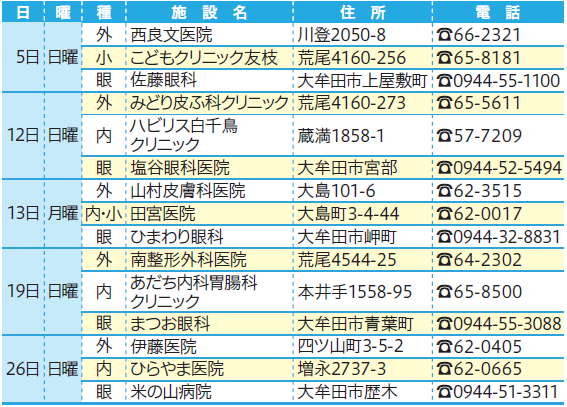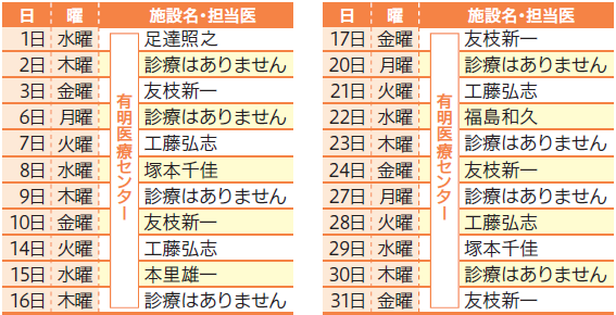 ・気象状況や自然災害などで、当番医が診療できない場合があります。
