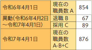 ※「退職」は令和6年4月1日~令和7年3月31日、「採用」は令和6年4月2日~令和7年4月1日までの数を計上しています。