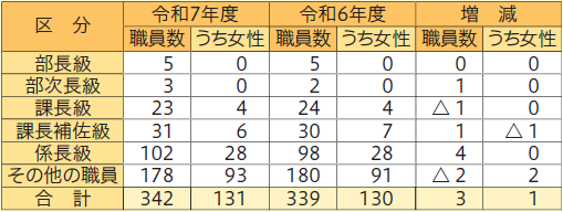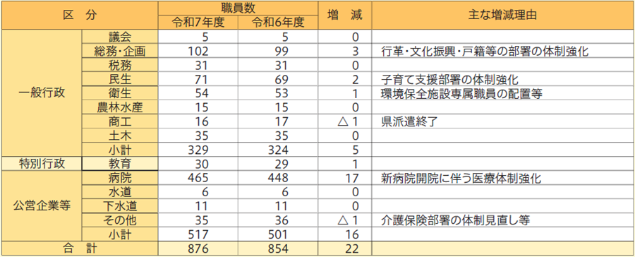 ※一般行政職とは、税務職、福祉職、技能労務職、企業職などを除いた職種です。そのため、業務内容で区分している(4)の「一般行政」部門の職員数と一致するものではありません。
