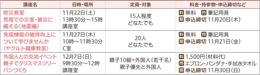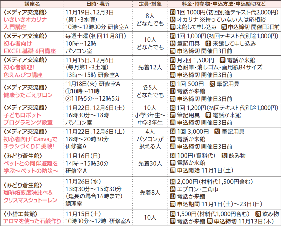 申込み:二次元コードで申し込むか生涯学習課で申し込み