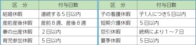 主な特別休暇の種類と付与日数
