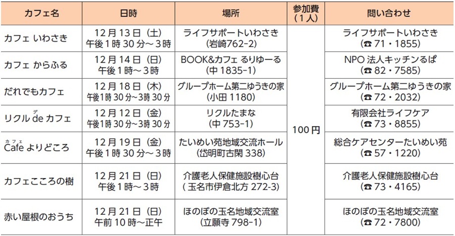 ・認知症について相談や対応ができるスタッフがいます。お気軽にご参加ください。