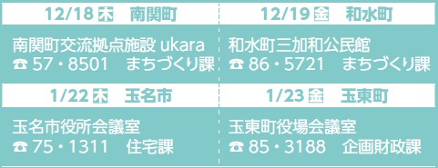 南関町・和水町は12月12日(金)まで、玉名市・玉東町は1月16日(金)までに