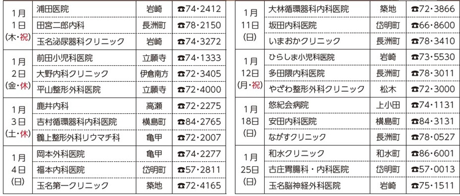 市または玉名郡市医師会ホームぺージや新聞でご確認ください