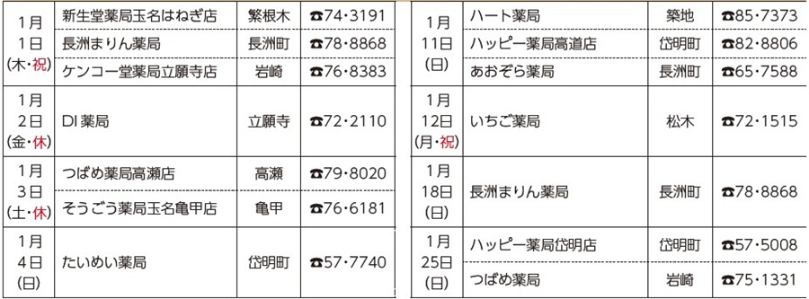 ◆休日当番薬局(1月)