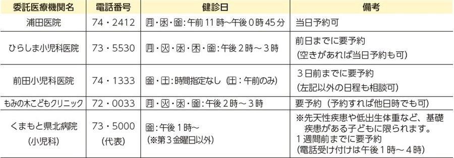 申し込み:前々日までに玉名市公式LINEにて予約、または保健センターに電話予約してください(先着順)。LINEでの予約はトーク画面下の基本メニューから「申請・申込み・応募・予約」を選び、フォームに沿ってお申し込みください。