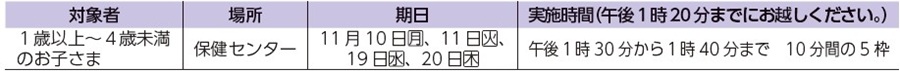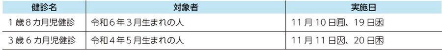 11月対象…令和7年7月生まれ(4カ月児健診)、令和7年3月生まれ(8カ月児健診)