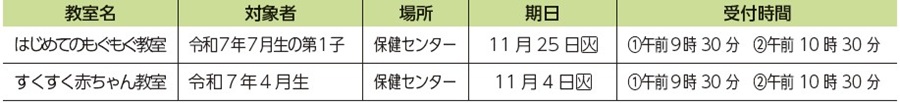 ・「はじめてのもぐもぐ教室」「すくすく赤ちゃん教室」の詳しい内容については、保健師・助産師の赤ちゃん訪問でお渡ししたチラシをご確認ください。