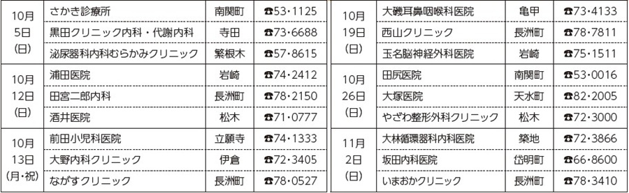 ・受診の際は、事前に休日当番医へお問い合わせください。