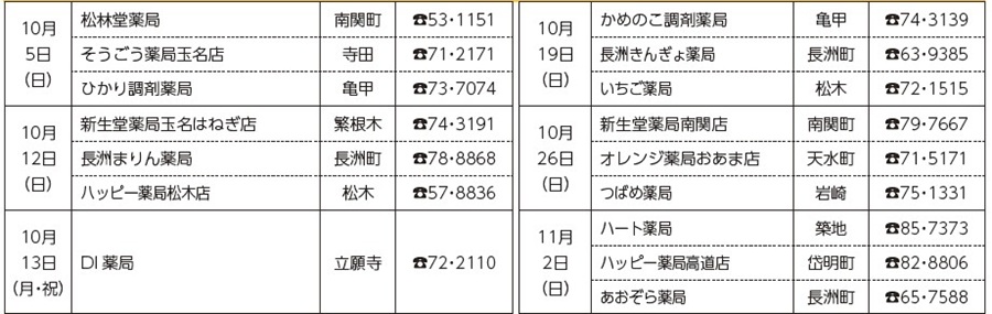 市または玉名郡市薬剤師会ホームぺージでご確認ください