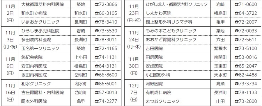 市または玉名郡市医師会ホームぺージや新聞でご確認ください
