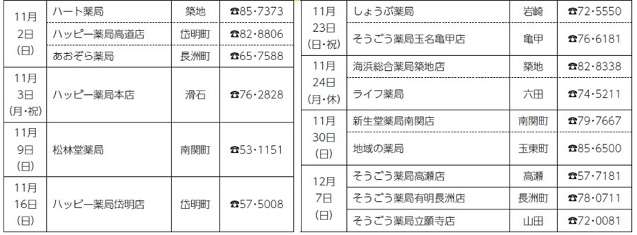 市または玉名郡市薬剤師会ホームぺージでご確認ください