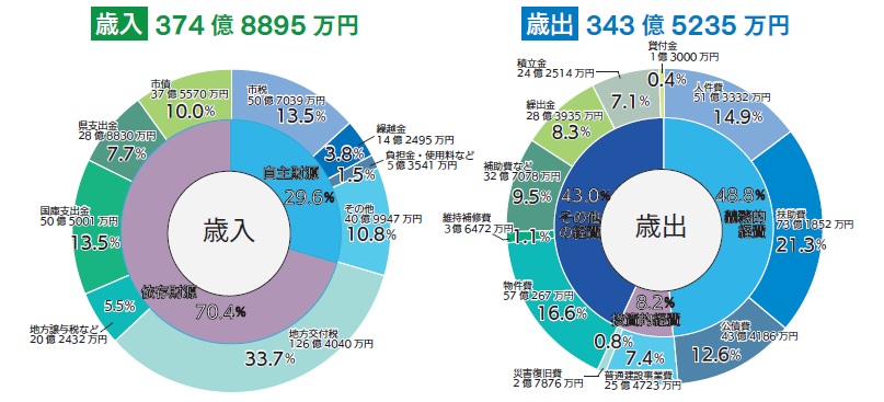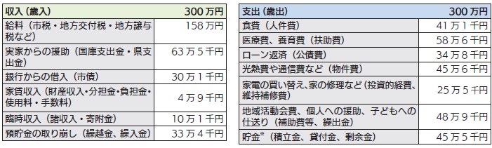 一般会計決算を家庭の総収入300万円に換算した家計簿を作成しました。