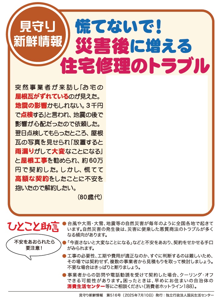くらし 見守り新鮮情報 12/41 前の記事 次の記事 発行日 : 2025年10月01日 自治体名 : 熊本県山鹿市 広報紙名 : 広報やまが 令和7年10月号 問合せ:山鹿市消費生活センター 【電話】43-0188 Tweet シェアする STOP!! 鳥獣被害 〜みんなの健幸手帳〜