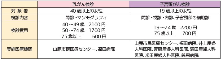 また、下記年齢の人は無料で乳がん検診・子宮頸がん検診を受診することができます。