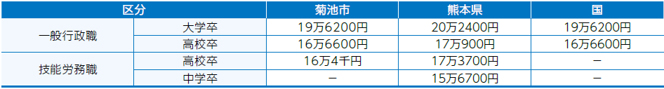 くらし 市職員の給与・定員管理などを公表します(1) 5/49 前の記事 次の記事 発行日 : 2025年12月01日 自治体名 : 熊本県菊池市 広報紙名 : 広報きくち 令和7年12月号 菊池市人事行政の運営等の状況の公表に関する条例に基づき、前年度の給与や職員数、勤務条件などを公表します。 【1】部門別職員数に関する状況 部門別職員数の状況(各年4月1日現在) 【2】職員の給与の状況 (1)職員の初任給の状況(令和6年4月1日現在) ※給料は基本給料額、給与は諸手当を含む支給額のことです (2)職員の平均給与月額および平均年齢の状況(令和6年4月1日現在) 1.一般行政職 2.技能労務職 (3)職員の経験年数別・学歴別平均給料月額の状況(令和6年4月1日現在) Tweet シェアする 第35回菊人形・菊まつり 市職員の給与・定員管理などを公表します(2)