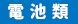 乾電池、ボタン電池、コイン電池、リチウムイオン電池などの充電池、モバイルバッテリー、ポータブル電源、電動アシスト自転車用バッテリー