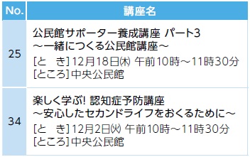 講座の内容は公民館のホームページから確認できます。詳しくは、中央公民館へお問い合わせください。