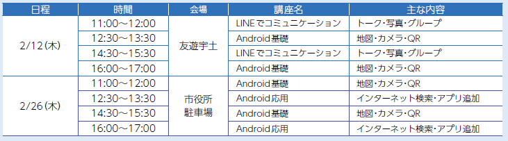 スマートフォンを持っていない方や、使い方に不安がある方を対象に、市内でスマホ教室を実施します。スマートフォンの貸し出しもあり、どなたでもお気軽に参加できます。
