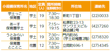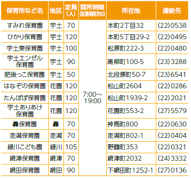 ◇宇土市内保育所など一覧(変更になる場合があります。)