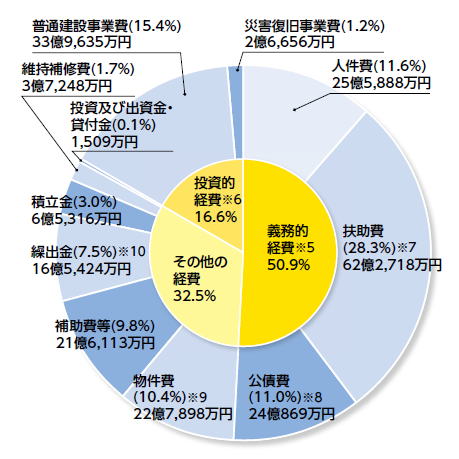 ※5:義務的経費…支出が義務付けられている経費。人件費・扶助費・公債費がある。
