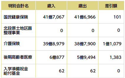 特別会計とは、特定の事業を行う場合、その他特定の歳入をもって特定の歳出に充て、一般の歳入歳出と区分して経理する必要がある場合において、一般会計から分離して別に収支経理を行う会計をいいます。宇土市には、令和6年度時点で5つの特別会計があります。令和6年度は、全ての特別会計で安定的な運営を行っています。