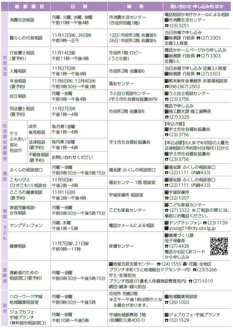 くらし くらしの無料相談窓口 28/41 前の記事 次の記事 発行日 : 2025年11月01日 自治体名 : 熊本県宇土市 広報紙名 : 広報うと 令和7年11月号 相談する前には、各問い合わせ先への確認をお願いします。全ての相談日は年末年始・祝日を除きます。 Tweet シェアする 宇土中高の今 うとのできごと