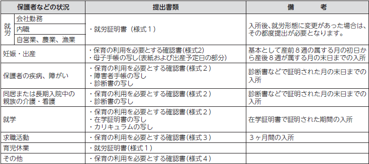 〔参考:(2)保育必要事由の根拠書類一覧〕
