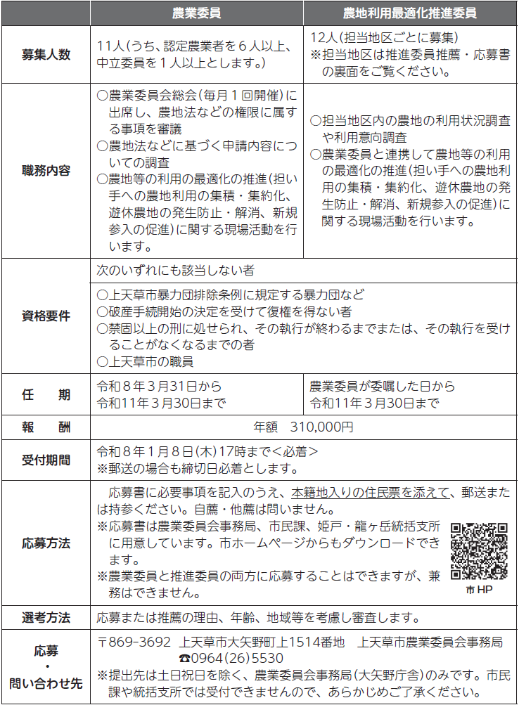 このたび、任期満了に伴い、農業委員と農地利用最適化推進委員を募集します。