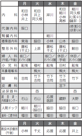 ・診療案内は都合により変更となる場合があります。ご了承ください。
