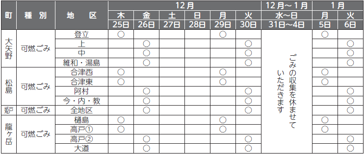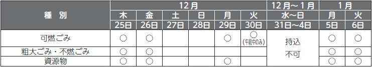 ■可燃ごみ収集(年末年始の収集日にご注意ください。)