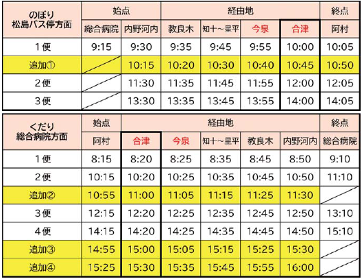 ※樋合地区は樋合地区乗合タクシーをご利用ください。