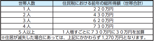 所得要件があり、下記の所得制限以下の方が対象となります。
