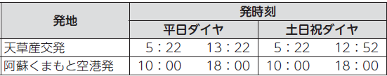 ・天草産交~阿蘇くまもと空港:3,000円(乗車時間2時間38分)