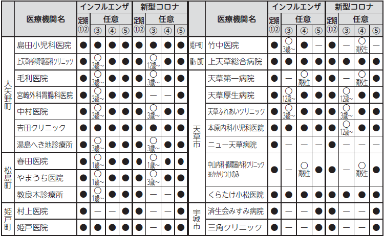 ▽委託医療機関 ※接種日、接種対象年齢に制限がある場合がございますので、必ず事前にご予約ください。