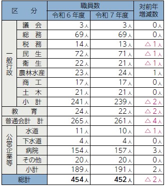 2.部門別職員数の状況(R7.4.1現在)