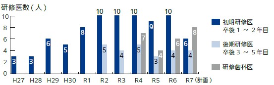 今年度は、後期専門研修医4人、初期研修医6人の計10人の先生を受け入れます。