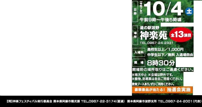 イベント 第34回 神楽フェスティバル 22/28 前の記事 次の記事 発行日 : 2025年09月01日 自治体名 : 熊本県阿蘇市 広報紙名 : 広報あそ 2025年9月号 ※詳しくは本紙をご覧ください。 Tweet シェアする まちのわだい マイナビ ツール・ド・九州2025