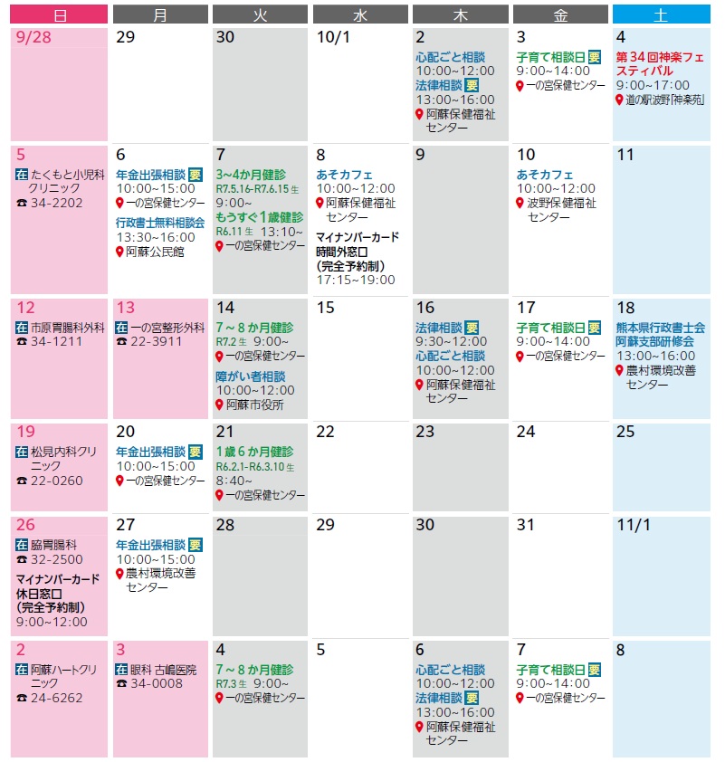最新の情報は市ホームページのくらしのカレンダーをご覧ください。