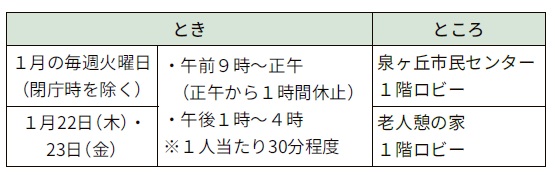 市では、スマートフォンをもっと身近に感じて、便利に利用できるよう、『スマホ相談窓口』を開設します。1月は、泉ヶ丘市民センターと、老人憩の家に開設します。相談は、専門の相談員が対応します。気軽にお越しください。