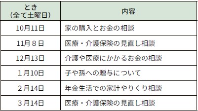 専門の相談員が、毎回テーマに沿って、個別に対応します。相談料は無料で、予約制です。