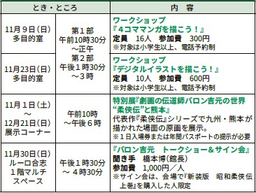 イベント マンガを読もう!観よう!! 学ぼう!!! 合志マンガ ミュージアムだより 28/40 前の記事 次の記事 発行日 : 2025年10月20日 自治体名 : 熊本県合志市 広報紙名 : 広報こうし 令和7年11月号 第236号 ■ワークショップ・特別展・トークショー 申し込み・問い合わせ:合志マンガミュージアム 【電話】096-273-6766 ※休館日は、31ページのお知らせカレンダーをご覧ください ※新入荷本情報、各イベントについて詳しくは当館ホームページをご覧ください Tweet シェアする 図書館だより 警察署だより