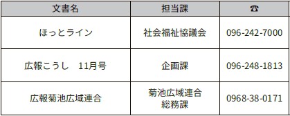 掲載内容についてのお問い合わせは下記の文書名の各担当課までご連絡ください。