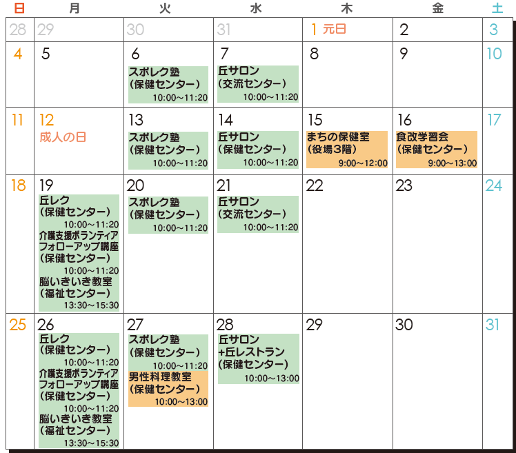 ■新年からもふれあいの丘 保健センターに みんなで集い、動いて、しゃべって健康生きがいづくり♪