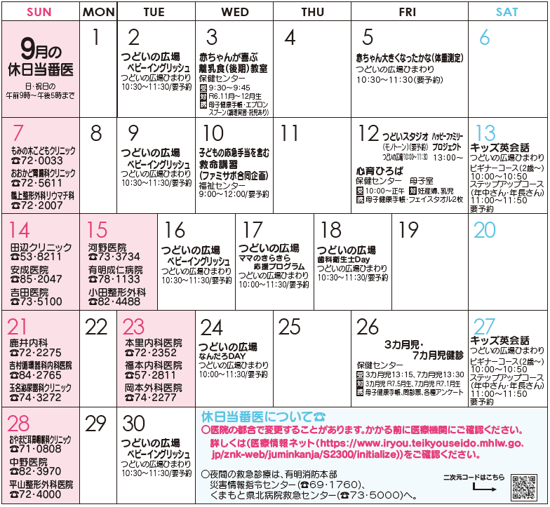 つどいの広場の行事の予約は直接つどいの広場【電話】85-8866まで