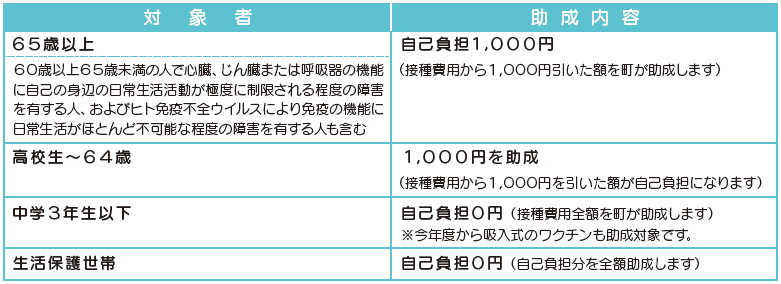 ※今年度から吸入式のワクチン(2歳~18歳)も助成対象です。